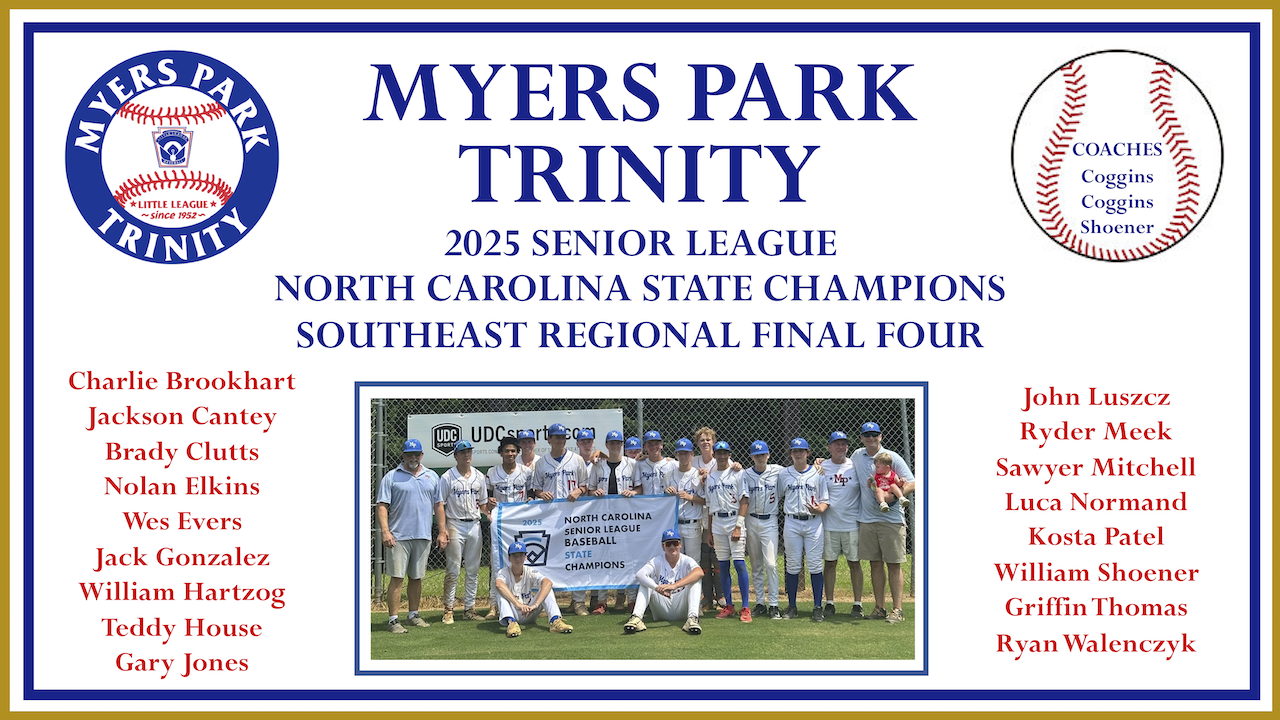 Welcome to Myers Park Trinity Little LeagueHome of the 12-time North Carolina District 3 Champions (12U division)1957, 1959, 1982, 1985, 1986, 1987, 2010, 2013, 2014, 2015, 2022, 2023